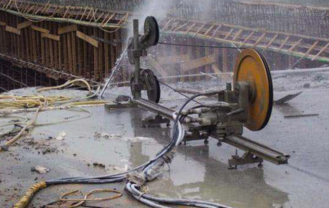 混凝土切開(kāi)是指選用液壓墻鋸機(jī)、電動(dòng)碟鋸機(jī)、水鉆或許馬路切開(kāi)機(jī)等東西對(duì)混凝土構(gòu)件、墻體、路面等進(jìn)行切開(kāi)的施工技能,它具有切開(kāi)才能強(qiáng),靜力無(wú)損,功率高,選用水冷卻,無(wú)施工粉塵等特色 :切開(kāi)撤除:繩鋸切開(kāi)是金剛石繩子在液壓馬達(dá)驅(qū)動(dòng)下繞被切開(kāi)物高速跋涉研磨然后完結(jié)切開(kāi)作業(yè)。  運(yùn)用繩鋸設(shè)備對(duì)混凝土切開(kāi)拆 除···